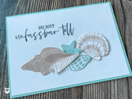 Vielleicht weißt Du es, ich mag die Reversible Stempel (Wendestempel) nicht besonders. Oft stellen mich die Stempelabdrücke nicht zufrieden, obwohl das Konzept dieses Stempeltyps dem Grunde nach clever ist. Im neuen Minikatalog von Stampin‘ Up!® steckt nun eine Ausnahme, die mir richtig viel Freude macht. „Shell Collection“ enthält 10 Stempel, mit denen sich 20 Stempelabdrücke…