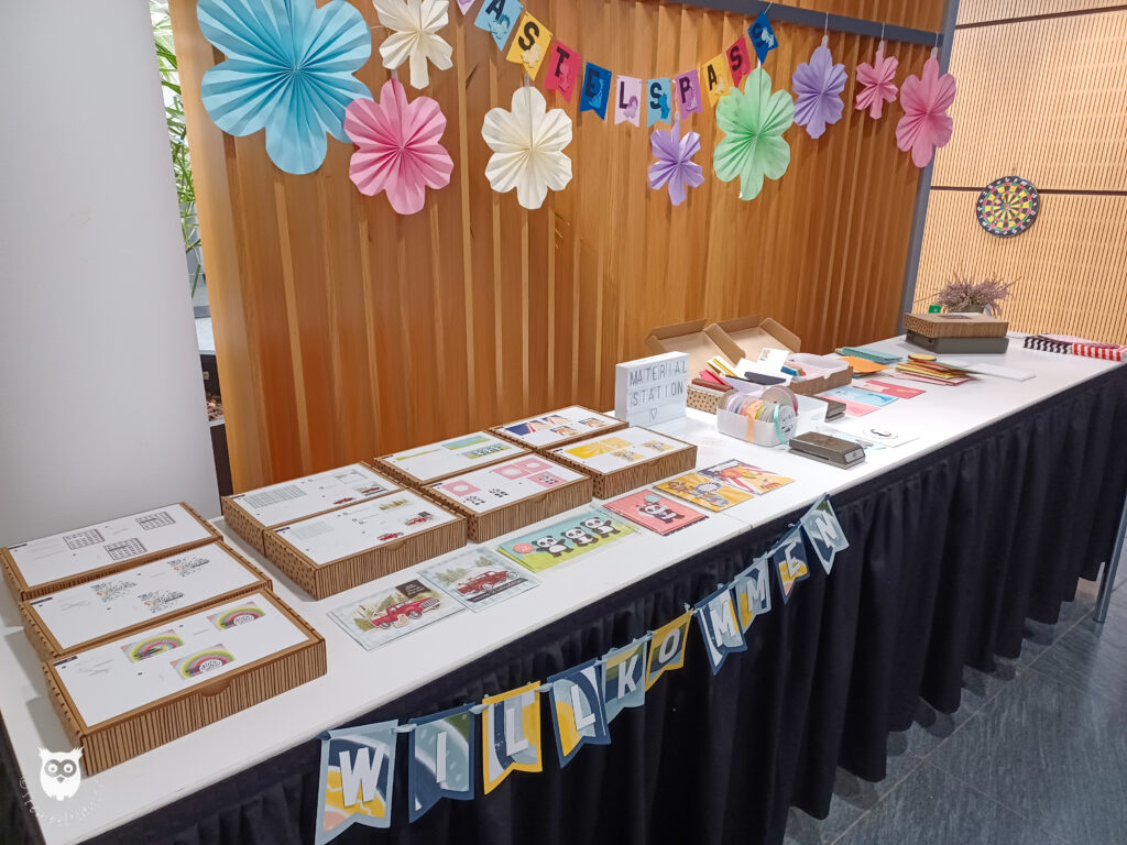 Wichtig war, dass meine kleinen Bastelgäste gutes Licht, Platz und Ruhe zum Gestalten hatten. Das haben wir dank meiner flexiblen Standausstattung mit Leichtigkeit geschafft. Der Bastelbereich sah nicht nur schön aus, sondern hat auch ganz wunderbar funktioniert.