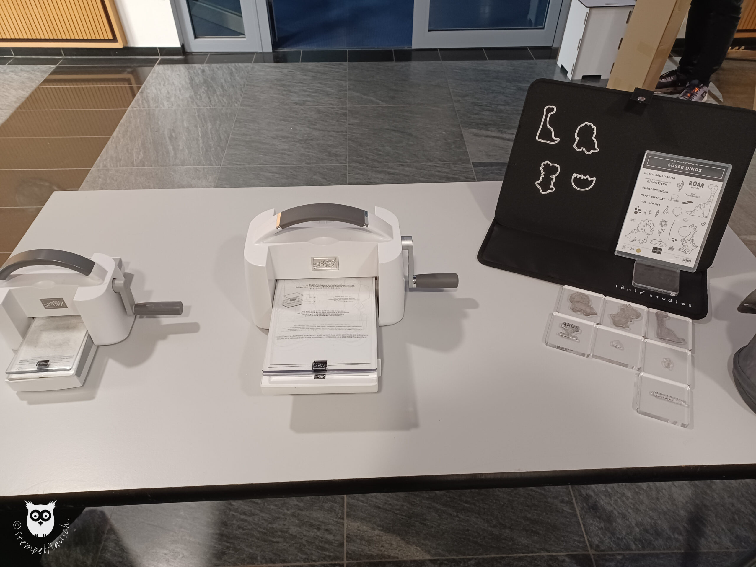 Wie immer hatte ich nur nette Eltern und Kinder an meinem Tisch, die sich alle mit einem Lächeln verabschiedet haben. Sogar Vierjährige kamen mit etwas Unterstützung durch Mama oder Papa prima klar. Überhaupt waren die Väter in diesem Jahr ganz besonders begeistert von der Stanzmaschine. So mancher Vater hat stolz bunte Dinos aus Papier hergestellt.