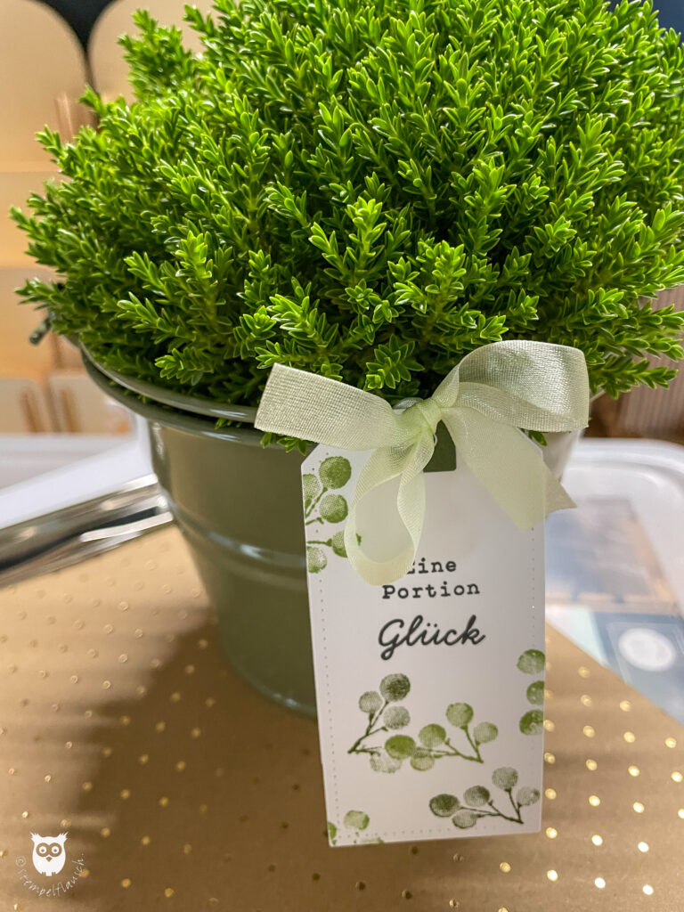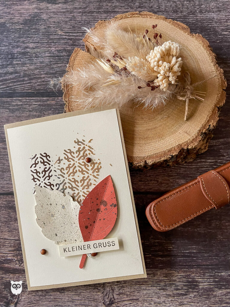 Für diese Karte habe ich einmal mehr das Kreativset Herbstgirlande geplündert. Bestimmt werde ich keine Girlande mehr daraus machen, sondern lieber viele schöne Kärtchen.
