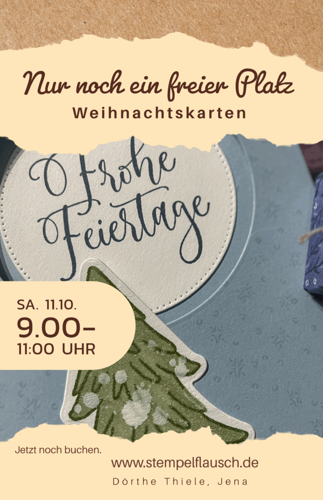Ich freue mich mit Dir am Freitag Herbst- und Trauerkarten sowie am Samstag Weihnachtskarten herzustellen.