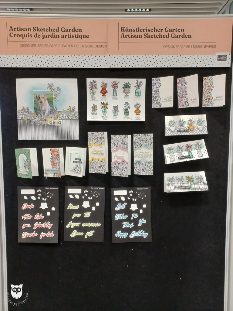 Wie immer bei OnStage gab es Schauwände, auf denen all die wunderschönen Papierkreationen ausgestellt wurden, die während der Bühnenpräsentationen zu sehen waren. Von der Bühne sieht das schon immer großartig aus, aus der Nähe erst Recht.
