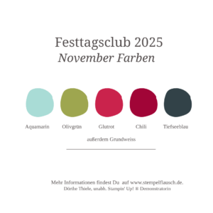 Weiter geht es mit dem November-Paket. Du brauchst Dein Materialpaket, die Produkte aus dem Festtagsclub und Stempelkissen im Farbspektrum.