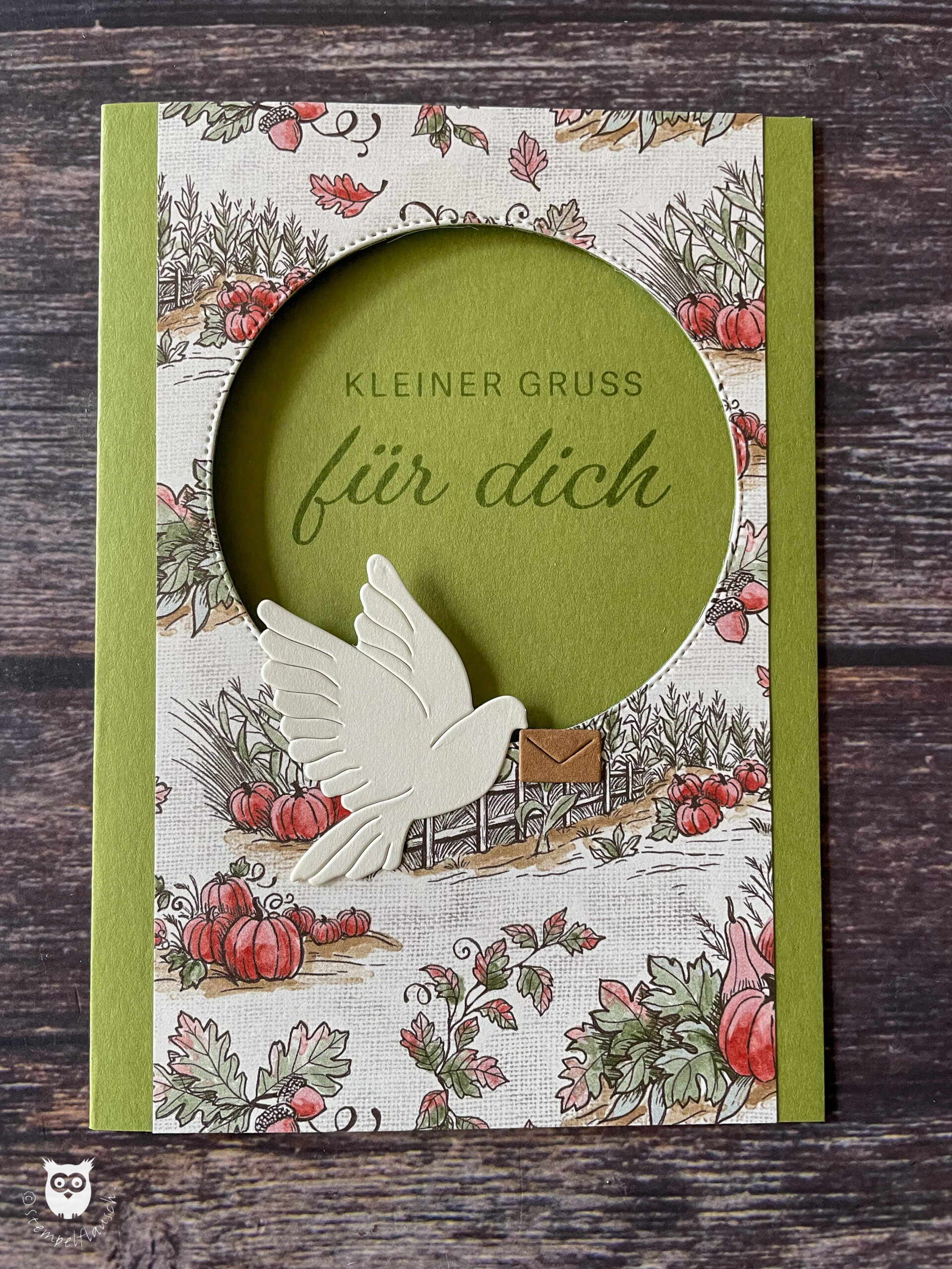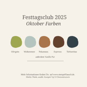Starten wir mit dem Oktober-Paket. Du brauchst Dein Materialpaket, die Produkte aus dem Festtagsclub und Stempelkissen im Farbspektrum (Schwarz ist immer eine gute Ergänzung).