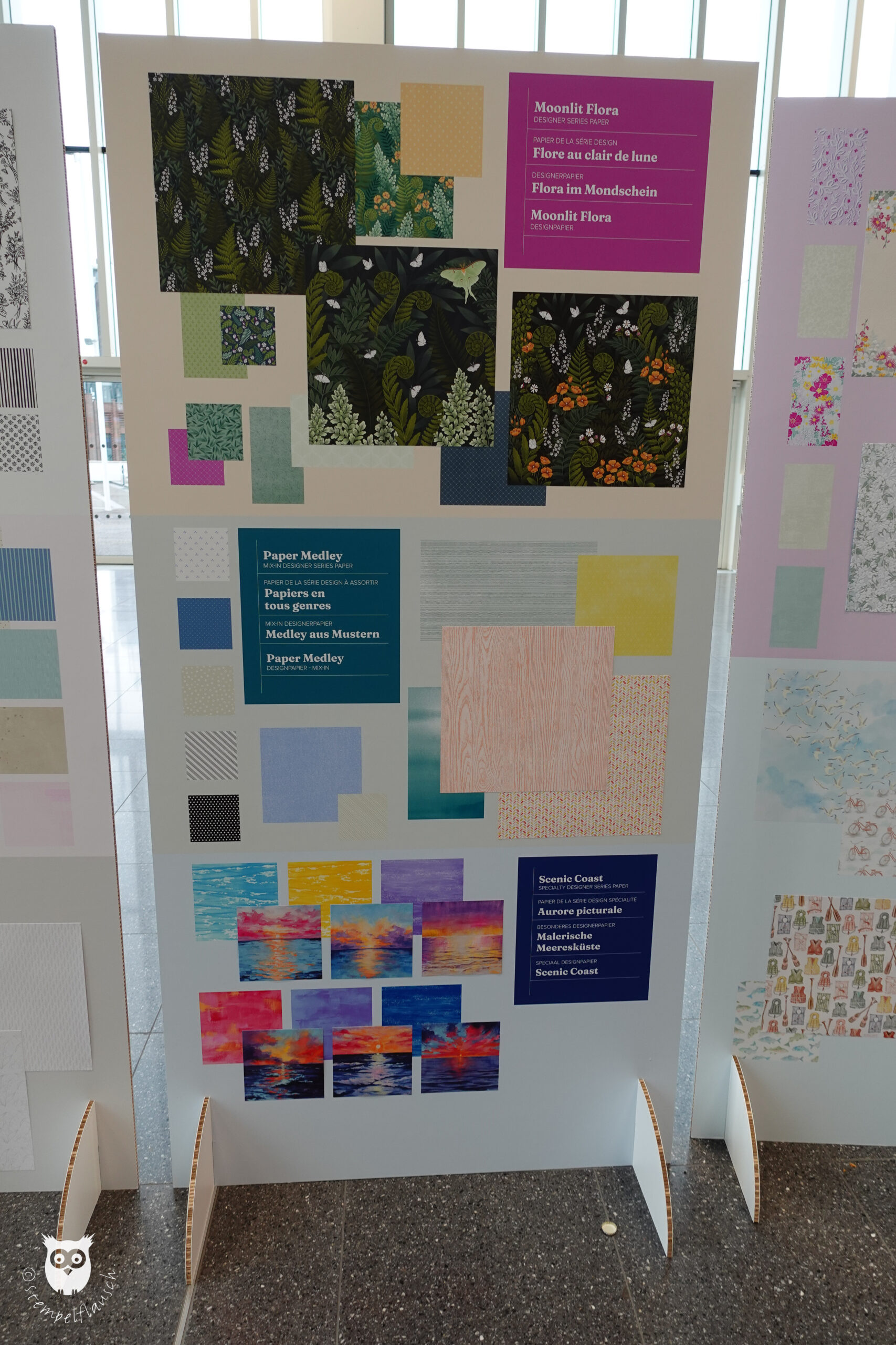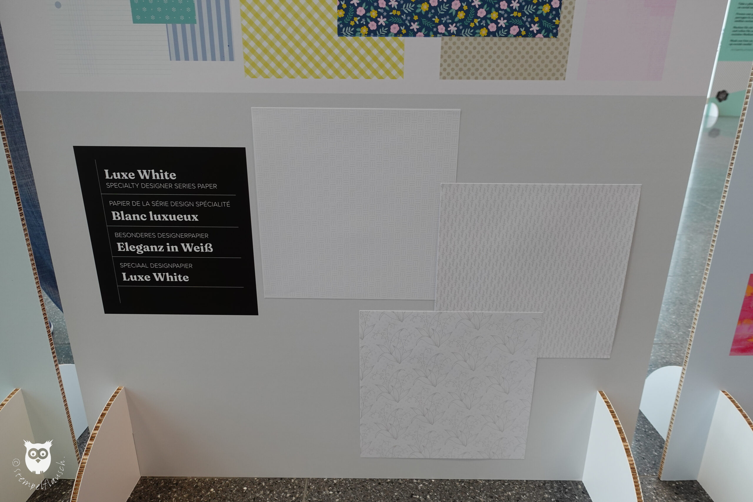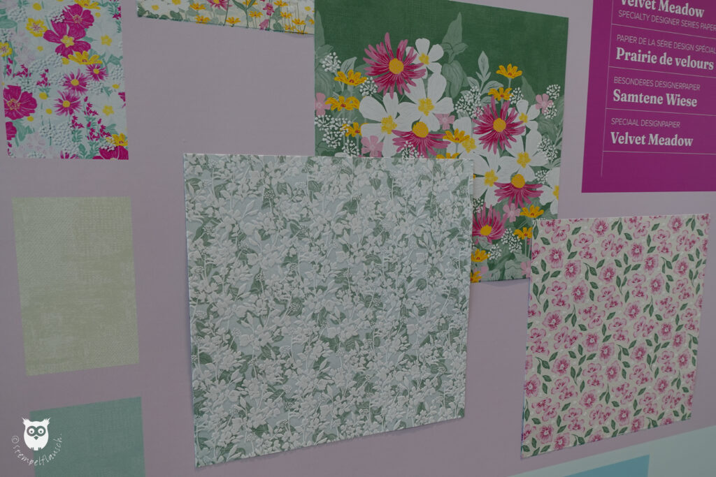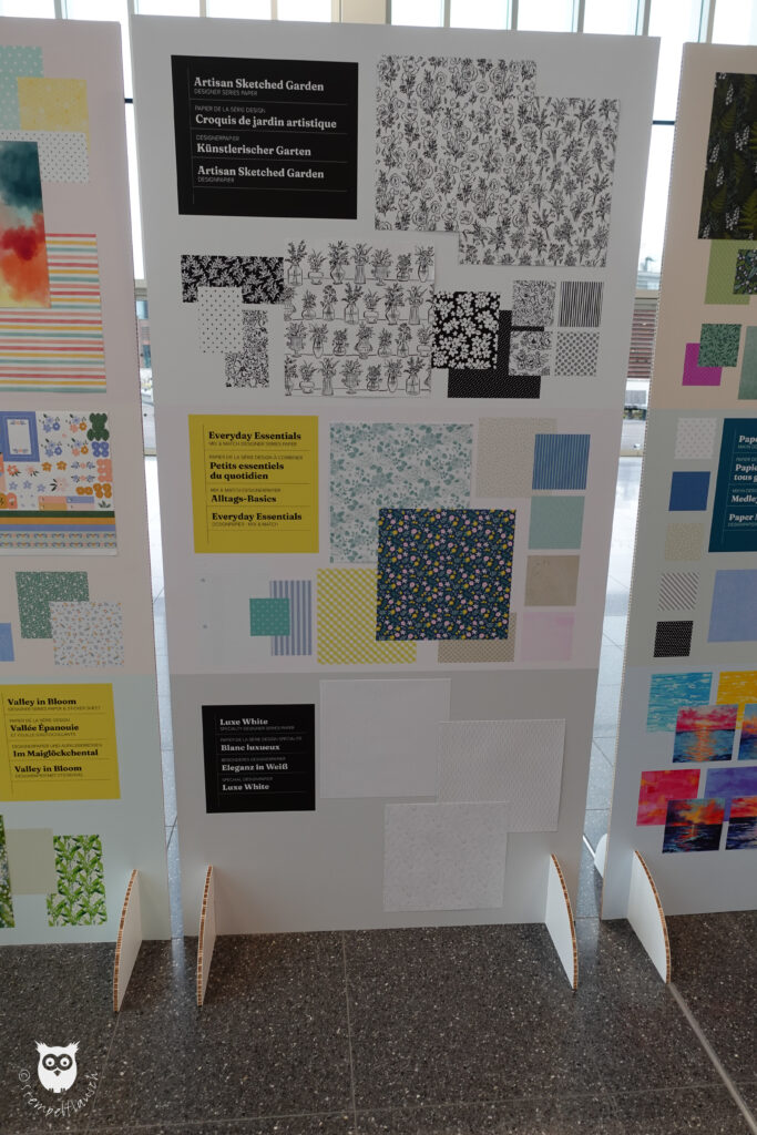 Neue Produkte wurden natürlich auch ausgestellt, so z.B. die neuen Designerpapiere, von denen Du hier eine Auswahl sehen kannst.