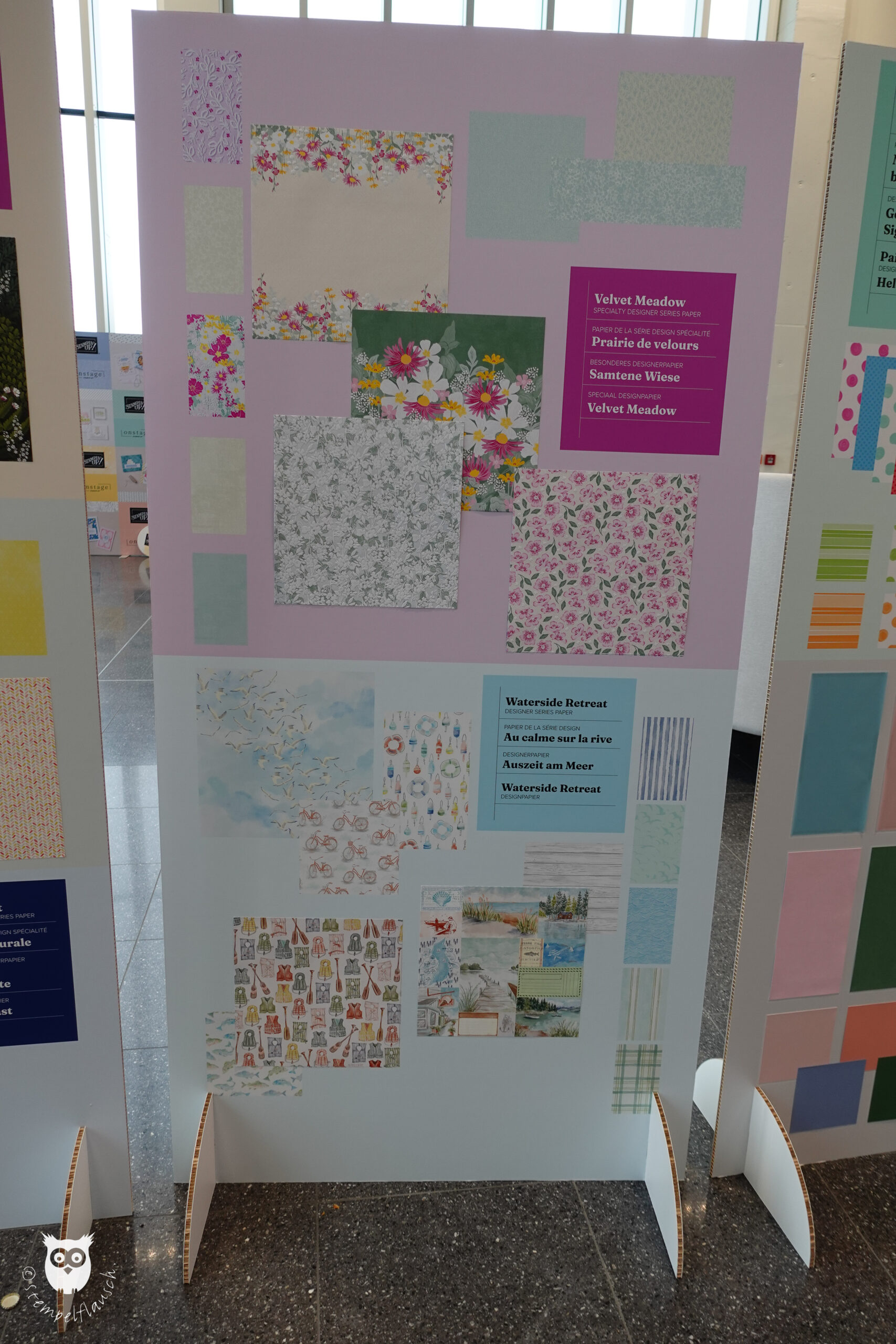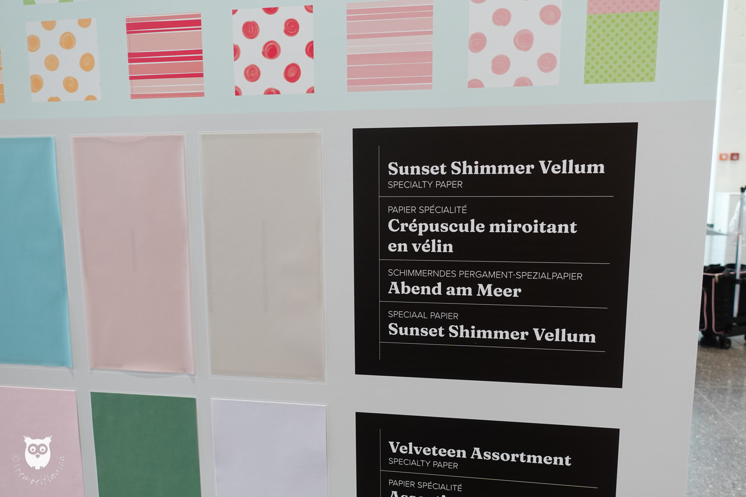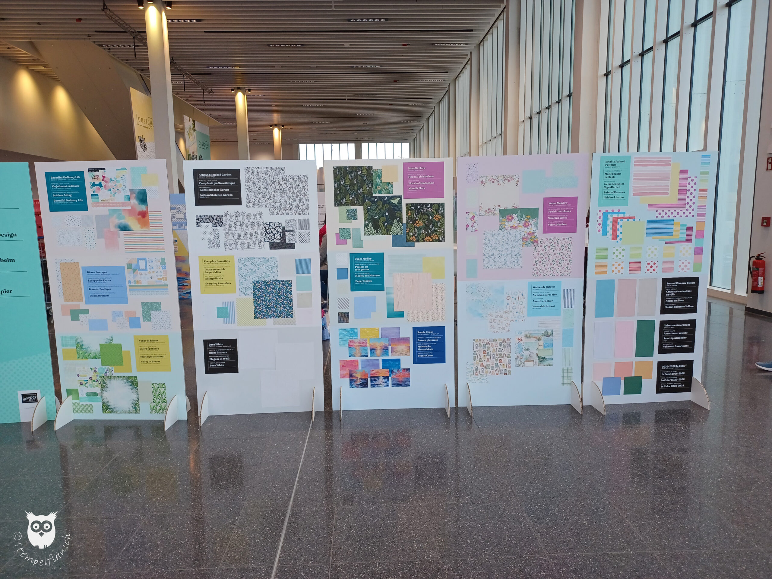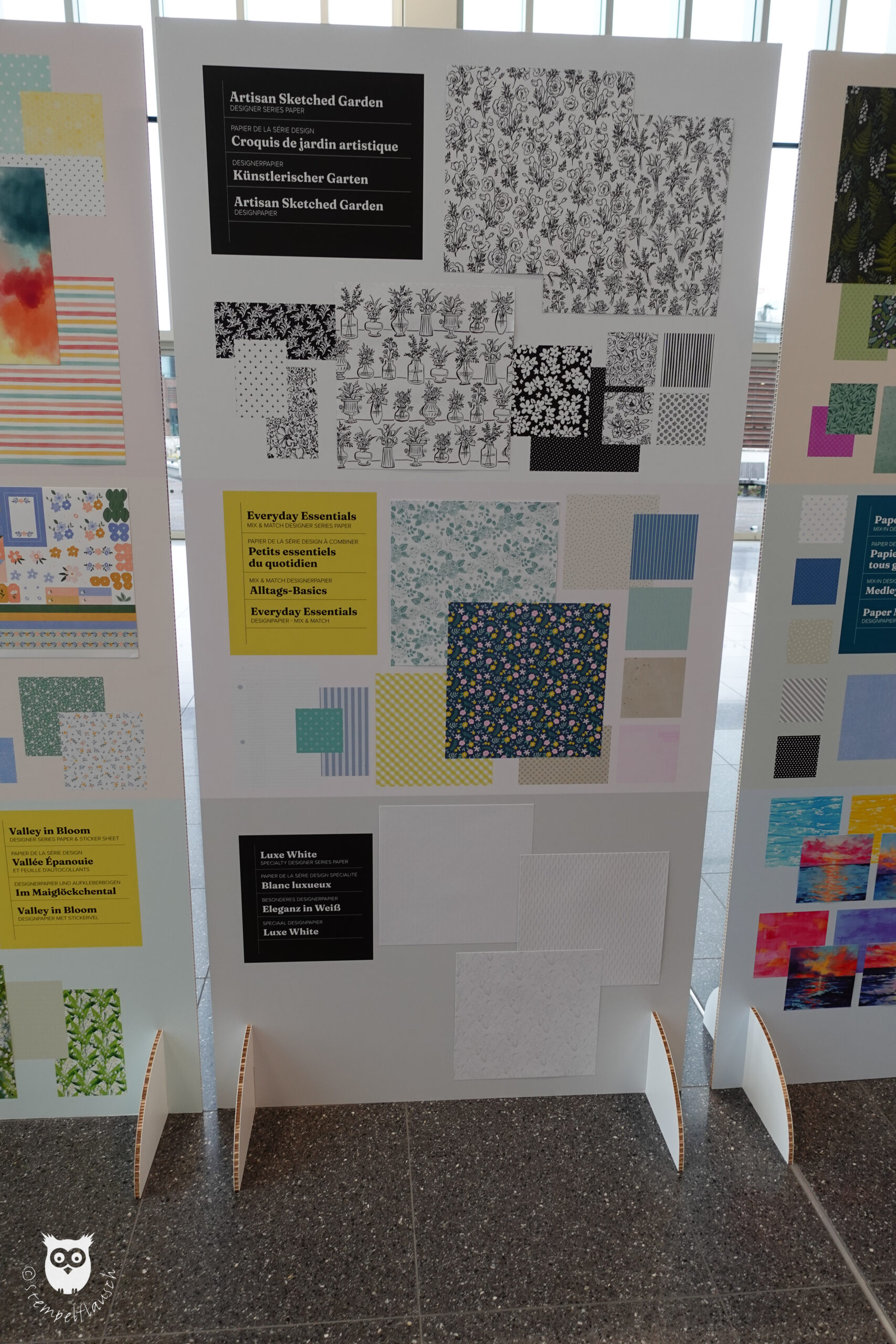Neue Produkte wurden natürlich auch ausgestellt, so z.B. die neuen Designerpapiere, von denen Du hier eine Auswahl sehen kannst.