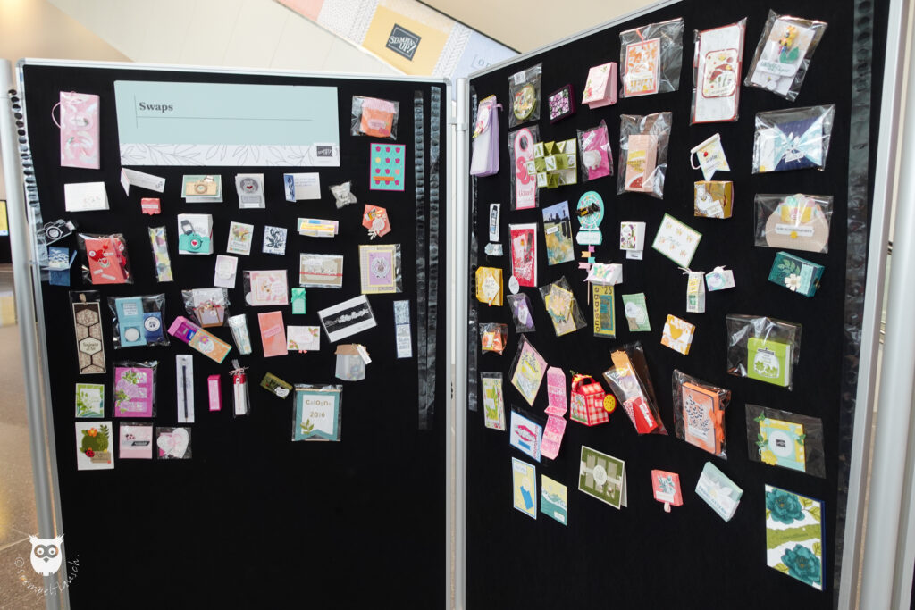 Morgen gibt es dann den dritten und letzten Teil meines Berichtes mit einem Blick auf die Schauwände, an denen all die schönen Ideen von den Bühnenpräsentationen ausgestellt waren. Ich freue mich schon Dir zeigen zu können, welche Kreationen meine Demokolleginnen und das Team um Stampin‘ Up! angefertigt hatten.