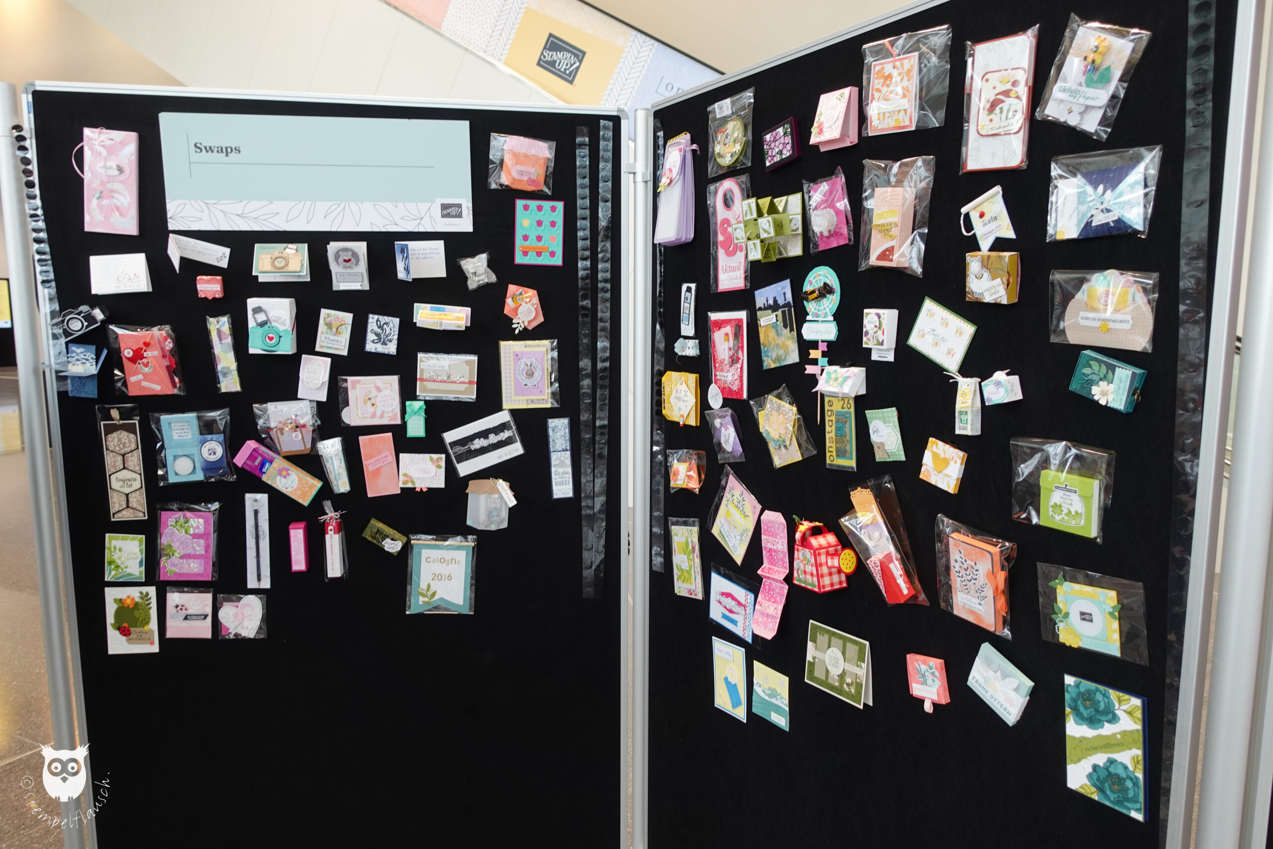 An den Swap-Wänden war immer was los, sogar die Frauen von der Garderobe haben sich in einer ruhigen Minute einen kleinen Moment Zeit genommen, um dort mal kurz vorbeizuschauen. Das waren ja nur wenige Schritte. Sie hatten also eine prima Aussicht auf all die schönen handgefertigten Tauschobjekte.