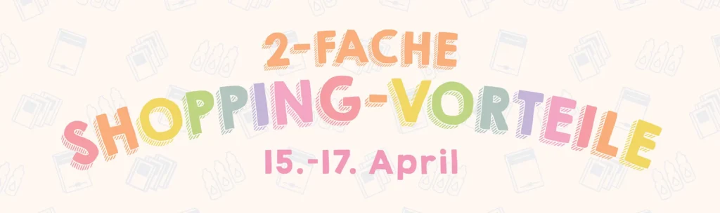 Gibst Du zwischen dem 15. und 17. April beispielsweise 35 Euro (vor Versand) aus, bekommst an den kommenden drei Tagen statt 3,50 Euro Shoppingvorteilen 7,- Euro in Deinem Kundenkonto von Stampin‘ Up! gutgeschrieben.