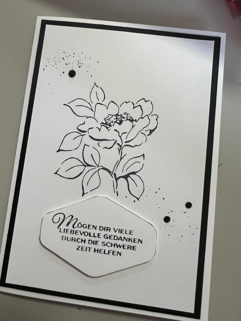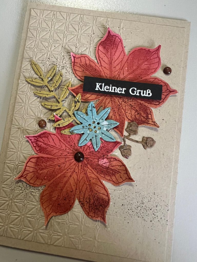 Bevor ich Dir aber die Weihnachtskarten zeige, hier noch eine Impression vom Freitagabend. Das sind drei der Karten, die Alrun im Herbst- und Trauerkarten Kurs gebastelt hatte. Sie ist in den Jahren, die sich mich begleitet, zu einer lieben Freundin geworden und eine talentierte Kreative ist sie noch dazu.