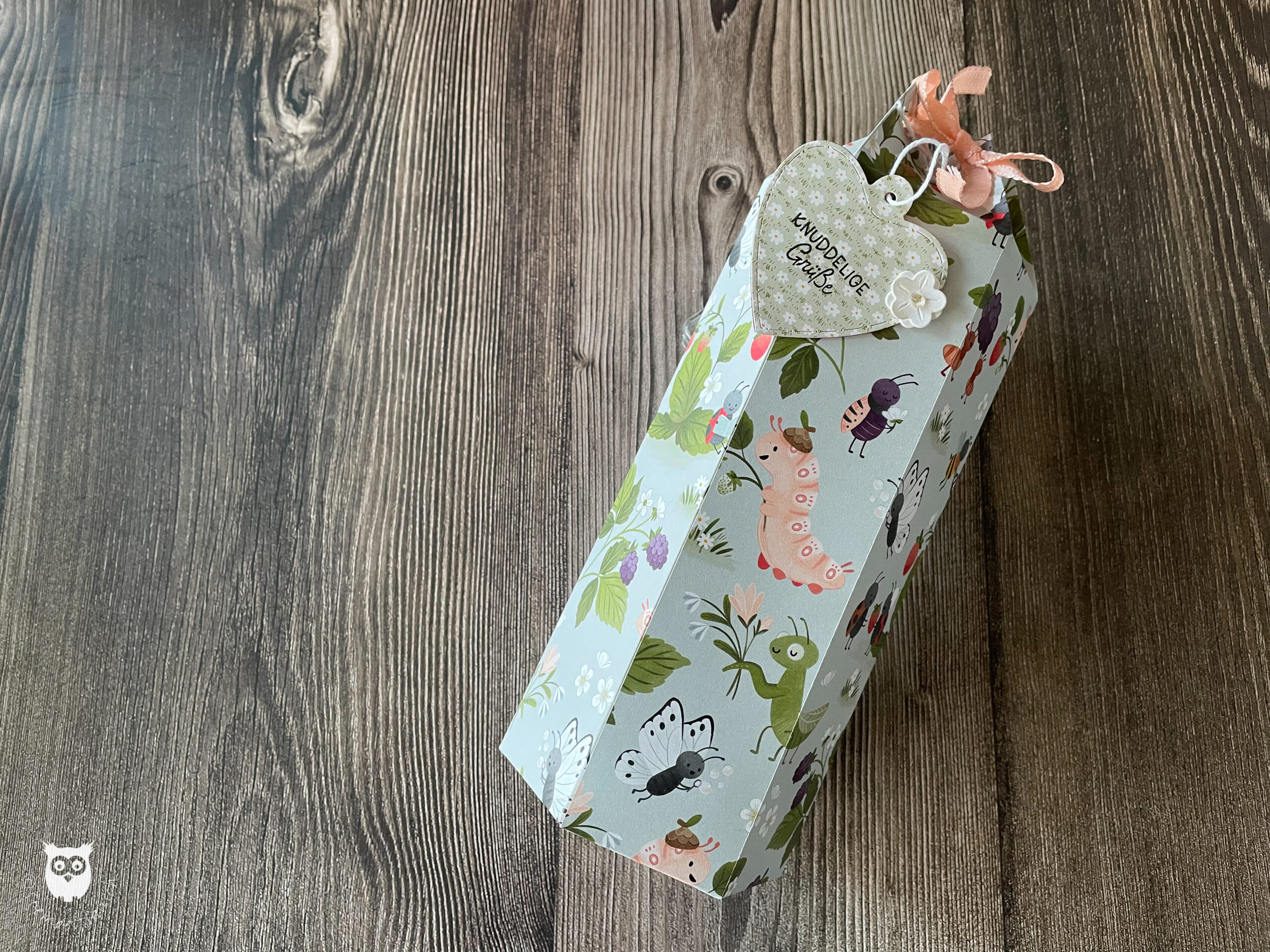 Trotzdem ist gestern pünktlich mein Donnerstagvideo erschienen. Dafür habe ich zu einem ganz und gar uneleganten Designerpapier gegriffen und eine Sternenbox gefertigt. „Käfer & Co“ heißt es und die Gottesanbeterinnen darauf sind vollkommen harmlos und niedlich.